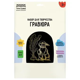 Гравюра с эффектом золота ТРИ СОВЫ «Зайка», А4