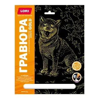 Гравюра с металлическим эффектом золото. Собаки «Акита-ину»