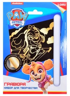 Гравюра Щенячий патруль малая с металлическим эффектом золото «Скай»