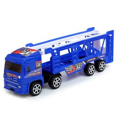 Грузовик «Автовоз», инерционный, с 4 машинами, цвет синий. Металлический грузовик «Эвакуатор» станет настоящим спасением на дороге! Благодаря прицепу он легко вместит в себя несколько автомобилей и доставит до места назначения. А машинки в комплекте сделают игру динамичной и интересной. <b> Особенности</b> <ul> <li> Машинки сделаны из качественного нетоксичного пластика, который полностью безопасен для детей.</li> <li> Количество машинок в наборе — 4 штуки.</li> <li> Задняя дверь прицепа открывается, поэтому позволяет машинкам легко въезжать и выезжать.</li> <li> Набор рекомендован для детей от 3 лет.</li> </ul> <b> Играем с пользой</b> Металлический грузовик «Эвакуатор» не только поможет малышу почувствовать себя водителем настоящей спецтехники, но и поспособствует развитию важных навыков. «Эвакуатор» улучшит воображение, мелкую моторику рук, пространственное мышление, а также познакомит ребенка с новым видом гоночного автомобиля.