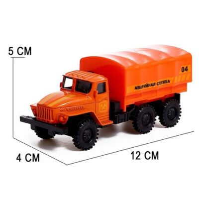 Грузовик металлический «УРАЛ «Аварийная служба», инерция, масштаб 1:43. Металлическая модель грузовика «Урал» торговой марки «Автоград» — детально проработанный транспорт специального назначения. Машинка дополнит игрушечный автопарк и станет прекрасным подарком для маленького любителя техники. Исторический факт: первый грузовой автомобиль бренда «Урал» был выпущен в 1961 году. А самую первую машину завод выпустил в 1944 году — это был легендарный «ЗиС-5В». <b> Особенности модели</b> <ul> <li> Кабина выполнена из металла. Все остальные элементы из пластика.</li> <li> Модель точно детализирована: выштамповка кузова, навесные элементы и др.</li> <li> Встроен инерционный механизм. Он позволяет задать транспорту скорость и дает возможность двигаться самостоятельно, по инерции.</li> <li> Двери кабины не открываются.</li> <li> Тент кузова снимается.</li> <li> Масштаб модели — 1:43.</li> <li> Размер: 16 × 6 × 7 см.</li> </ul> <b> Соберите всю коллекцию!</b> Линейка металлических моделей «Автоград» представлена широким ассортиментом транспортных средств: автомобили, автобусы, грузовики, спецтехника и т.д.