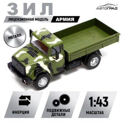 Металлическая модель ЗИЛ «Автоград» — детально проработанный военный транспорт. Машинка дополнит игрушечный автопарк и станет прекрасным подарком для маленького любителя техники.Особенности моделиКабина выполнена из металла. Все остальные элементы из пластика.Модель точно детализирована: выштамповка кузова, навесные элементы и др.Встроен инерционный механизм. Он позволяет задать транспорту скорость и даёт возможность двигаться самостоятельно, по инерции.Масштаб модели — 1:43.Размер: 16 × 6 × 5,5 см.Размер вертолёта: 9 × 2,5 × 4 см. Можно достать из кузова и играть отдельно.Соберите всю коллекцию!Линейка металлических моделей «Автоград» представлена широким ассортиментом транспортных средств: автомобили, автобусы, грузовики, спецтехника и т.д.