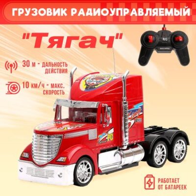 Грузовик радиоуправляемый «Тягач», работает от батареек цвет красный. <b> Повелителям дорог</b> На что способны тяжеловесные машины, мальчишка узнает с невероятным радиоуправляемым «Тягачом». Красочный грузовик с первых секунд завладеет вниманием ребенка, мальчишка устроит захватывающие скоростные заезды и проверит, какая из машин его коллекции сможет опередить фуру. Грузовик быстро и точно реагирует на команды с пульта: подчиняясь им, он быстро набирает скорость, без труда преодолевает подъемы и спуски, а также движется вперед, назад, вправо и влево. <b> Развлечение с пользой</b> Функциональная игрушка пробудит воображение малыша: с ней он придумает множество увлекательных сюжетов, поучаствует в гонках и первым придет к финишу. В процессе игры ребенок разовьет пространственное и техническое мышление, координацию движений и скорость реакции. «Тягач» функционирует от 4 батареек типа АА, пульт — от 2 батареек типа АА. Элементы питания в комплектацию не входят. Для детей старше 4 лет.