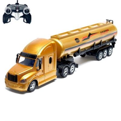 Грузовик радиоуправляемый «Цистерна», работает от аккумулятора. Радиоуправляемый бензовоз станет отличным подарком для ребенка от 3 лет или поклонника техники. Модель выполнена в золотистом цвете и представляет собой грузовой автомобиль с цистерной, способный передвигаться во все стороны. Управление осуществляется при помощи пульта, а световые эффекты добавляют игре дополнительного драйва. <strong> Особенности</strong> <ul> <li> Игрушка работает от аккумулятора 3,7В, заряда которого хватает на 20 минут активной езды.</li> <li> Радиус действия пульта управления составляет 30 метров, что позволяет играть как дома, так и на улице.</li> <li> Максимальная скорость движения — 10 км/ч, что делает управление безопасным и комфортным.</li> <li> Питание пульта обеспечивается двумя батарейками типа AA (LR6) — в комплект не входят.</li> <li> Транспорт выполнен из прочного пластика.</li> <li> Специальная подсветка создаст атмосферу реалистичной игры.</li> </ul> <strong> Развитие навыков</strong> Управление моделью помогает развивать реакцию, координацию движений и пространственное мышление. Ребенок сможет самостоятельно освоить основы управления техникой и научится планировать свои действия.