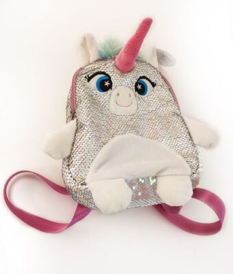 Рюкзачок с пайетками в виде единорога с красивыми вышитыми глазами и ярким розовым рогом — непременный аксессуар каждой модной девчонки. Спинка рюкзака мягкая и приятная на ощупь, лямки регулируются. Внутри — одно отделение. Рюкзак плотно застегивается на молнию, поэтому все необходимые мелкие предметы не растеряются. Вверху есть петелька, на которую рюкзак можно повесить на крючок. Изготовлен из качественных сертифицированных материалов.