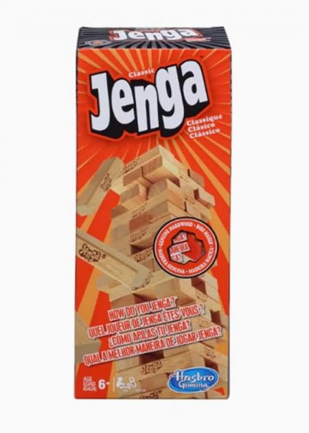The Hasbro Jenga A2120 game is a classic and exciting stacking game that requires skill, strategy, and a steady hand. The game includes 54 wooden blocks that are stacked to form a tower. Players take turns removing one block at a time from the tower and placing it on top, creating a taller and more unstable structure as the game progresses.The objective of Jenga is to remove a block without causing the tower to collapse. Players must carefully assess the stability of the tower and make strategic moves to keep it standing. The tension builds as the tower becomes increasingly wobbly, and every move becomes critical.The Jenga A2120 game is suitable for players of all ages, making it a great choice for family gatherings, parties, or casual get-togethers. It promotes hand-eye coordination, fine motor skills, and problem-solving abilities.The game comes with a stacking sleeve to help players set up the tower easily and quickly. It also includes instructions on how to play the game and variations to add more challenge and excitement.Whether you’re a seasoned Jenga player or new to the game, the Hasbro Jenga A2120 will provide hours of fun and entertainment for everyone involved. Get ready to test your skills and see how high you can build the tower before it tumbles!
