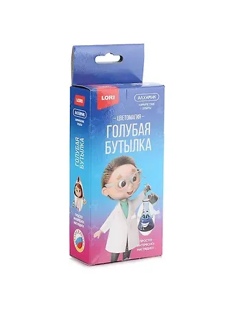Данный набор дает возможность наблюдать, как голубой раствор в колбе неожиданно теряет цвет. Но стоит встряхнуть «волшебный сосуд» — раствор снова становится голубым.