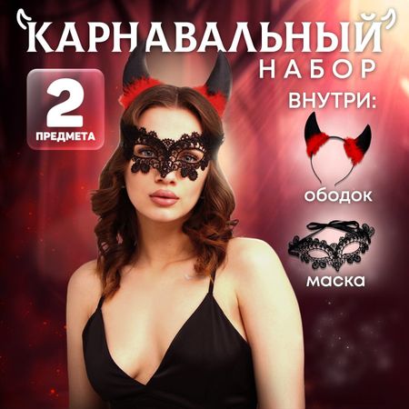 Хэллоуин. Карнавальный набор «Чертик» (ободок+маска). Карнавальный набор внесет праздничную нотку в ваш образ. Раздайте такие атрибуты всем гостям, и удивительная позитивная атмосфера сразу воцарится за вашим столом! Такие аксессуары станут эффектным дополнением к костюму на любых вечеринках или фотосессиях. А когда праздники закончатся, будут напоминать о весело проведенном времени! В набор входят: — маска; — ободок.