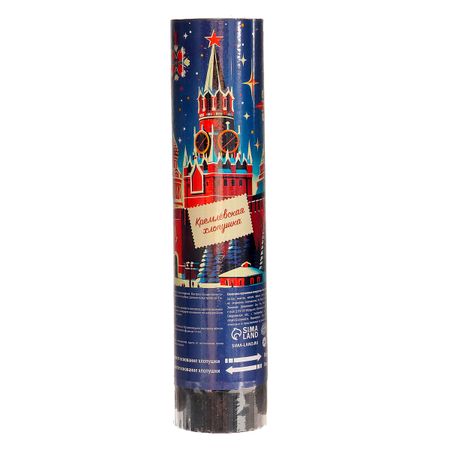 Хлопушка пружинная поворотная «Кремлевская хлопушка» 20 см. Пружинная хлопушка — это простой в использовании аксессуар, который поможет создать праздничное и веселое настроение! Она добавит яркости любому событию и станет отличным дополнением к любому праздничному декору. <b> Особенности</b> <ul> <li> Внутри хлопушки цветная фольга.</li> <li> Не является пиротехническим средством.</li> </ul> Пружинная хлопушка — это не только простой способ создать праздничное настроение, но и безопасное развлечение для гостей всех возрастов. <b> Как использовать</b> Для активации хлопушки необходимо повернуть нижнюю часть по часовой стрелке. Важно держать устройство вертикально, направив его верхнюю часть вверх. После активации из хлопушки вылетит конфетти.