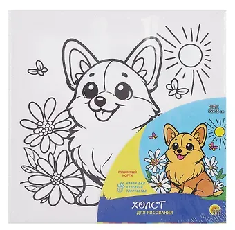 Холст с красками. Пушистый корги