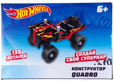 Конструктор Wheels Quadro — новинка, которая станет прекрасным времяпрепровождением для детей. Из качественных деталей можно собрать игрушечный болид. Части набора крепко соединяются между собой сразу в нескольких местах, что делает конструкцию более прочной. Оригинальные наклейки Хот Вилс делают модель яркой и необычной.Пошаговая красочная инструкция сделает процес сборки более увлекательным и простым. Инструкция доступна и в электронном варианте. Собранную модель, обладающую подвижными элементами, можно использовать для захватывающих соревнований на скорость.