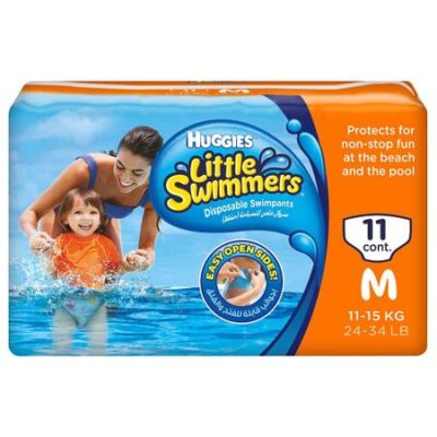 Enjoy worry-free water fun with your little one using Huggies Little Swimmers Diapers. These specially designed swim diapers are perfect for babies and toddlers who love to splash and play in the water.Huggies Little Swimmers Diapers are designed to provide a comfortable and secure fit, allowing your child to move freely in the water without any bulkiness or discomfort. The unique stretchy sides and waistband ensure a snug fit that stays in place, even during active water activities.These swim diapers are specially made with absorbent materials that won’t swell up in water, offering protection against leaks without weighing your baby down. They also feature easy-to-tear sides for quick and hassle-free removal, making changing a breeze, both in and out of the water.Huggies Little Swimmers Diapers are designed to contain solid messes while allowing water to pass through, keeping your baby’s skin clean and healthy. They have a fun and colorful design that your little one will love, adding a touch of cuteness to their swimwear.Whether you’re heading to the pool, beach, or any water adventure, Huggies Little Swimmers Diapers are a must-have for convenient and mess-free water play. Enjoy worry-free and fun-filled moments with your little swimmer!