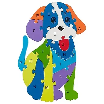 Игра, Деревянные пазлы-фигуры с цифрами и английским алфавитом Собака 11-02203-N-6