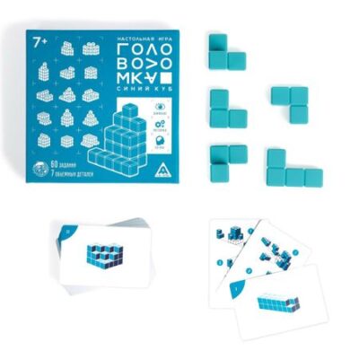 Игра-головоломка «Синий куб», 60 карт, 7 объемных деталей, 7+. <b> Настольная игра-головоломка</b> Как развить логику, сообразительность и пространственное мышление? С помощью объемной головоломки «Синий куб». В ней вас ждут 7 объемных деталей и 60 карточек с заданиями. <b> Как играть?</b> Карточки с заданиями 2-сторонние. На одной стороне находится задания, а на другой — варианты его решения. Не заглядывайте в ответы раньше времени, а то играть будет не так интересно. Ваша задача — с помощью всех имеющихся деталей составить точно такую же фигуру, как в карте с заданием. Также можно составлять собственные фигуры из деталей, а еще — выполнять задания с карточек на время. <b> Внутри вы найдете:</b> <ul> <li> 60 карт с заданиями,</li> <li> 7 объемных деталей.</li> </ul> <b> Играйте и развивайтесь вместе с ЛАС ИГРАС!</b>