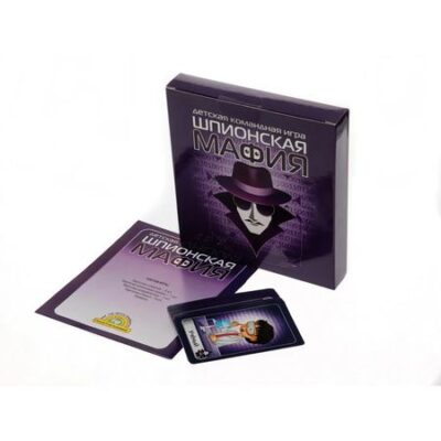 Командная настольная карточная игра «Шпионская мафия». Состав: карточки – 14 шт. (5,5 х 8,5 см), инструкция. Для детей 6–12 лет и их родителей, для 3–15 игроков. Развивает навыки общения в команде, логику, актёрские способности, креативное мышление и умение видеть причинно-следственные связи.
