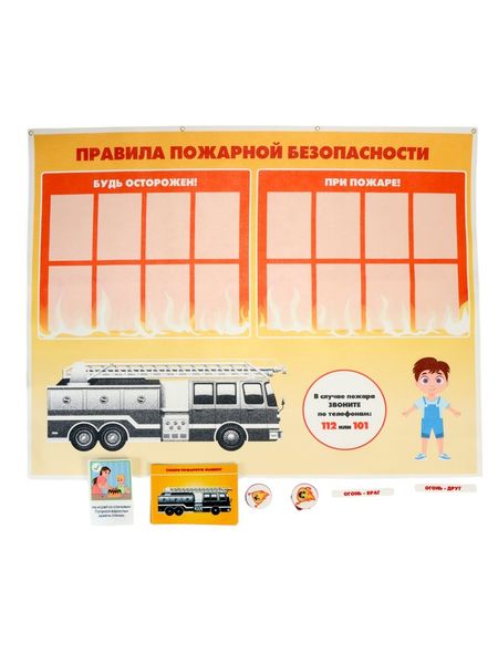 Интерактивное панно «Пожарная безопасность» — это увлекательный способ научить детей правилам поведения в опасных ситуациях. Набор из 55 деталей на липучках помогает малышам освоить важные знания через игры и практические задания. Подходит для детей от 3 лет, оно делает обучение ярким и запоминающимся.ОсобенностиЯркое панно с игровыми полями знакомит детей с правилами пожарной безопасности.Фигурки из фетра на липучках позволяют собирать пожарную машину и «одевать» пожарного, развивая мелкую моторику.Карточки с ситуациями помогают обсуждать опасные случаи и находить правильные решения.Подходит для групповых занятий в детских садах или индивидуального обучения дома.Игровой формат удерживает внимание даже самых маленьких участников.Наглядные примеры и задания закрепляют знания о том, как действовать в чрезвычайных ситуациях.Учимся играяЭто панно превращает обучение в увлекательное путешествие. Например, карточки с ситуациями помогают ребёнку понять, что опасно, а что безопасно. Обсуждая изображения, дети учатся анализировать и делать выводы. Игра напоминает сбор головоломки: каждый элемент помогает сложить полную картину правильного поведения.Интерактивное панно не только обучает, но и готовит детей к реальным ситуациям. Оно станет идеальным выбором для родителей и педагогов, стремящихся объяснить важные правила в доступной и интересной форме.