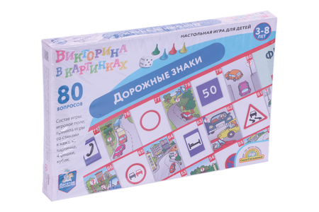 Игра настольная 10КОРОЛЕВСТВО викторина в картинках дорожные знаки 3-8 лет (04018)