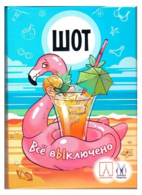 Шот это веселая игра для вечеринки для любителей выпить на тему отпуска на море. Правила очень простые: либо выполняете задания с карточки, либо пьёте, если задание не понравилось. Игра заканчивается, когда из колоды будет вытянута карта "Пора домой".