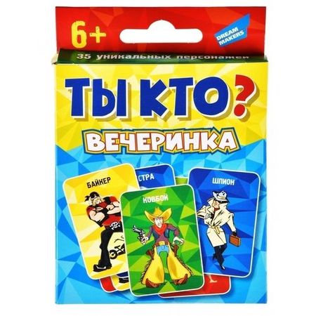 «Ты кто? Вечеринка» – весёлая игра, в которую можно играть везде! Задача игроков — задавая наводящие вопросы, первым угадать, какой уникальный персонаж изображён у него на карточке. Игра развивает ассоциативные навыки и дарит множество позитивных эмоций. Комплектация: 35 игровых карточек, правила игры.