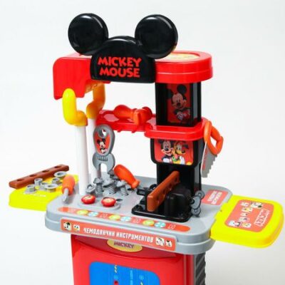 Игровой модуль детский 3в1 «Микки Маус»: мастерская, чемодан, набор инструментов. Привет, будущий мастер! Чемоданчик инструментов 3в1 – это твой первый шаг в мир настоящих строителей, изобретателей и супергероев ремонта! Внутри тебя ждут крутые инструменты: молоток, пила, отвертка, ключи, винты и другие секретные штуки. С ними ты сможешь построить что угодно: от сверхскоростной машины до космической ракеты (ну или хотя бы починить стул для мамы). <ul> <li> Секретный чемоданчик-трансформер: все инструменты живут в удобном чемоданчике, который легко превращается в настоящую мастерскую. Открой его – и ты окажешься в мире приключений! А когда работа закончена, просто сложи все обратно. Чемоданчик – как домик для твоих инструментов, только еще круче.</li> <li> Инструменты, которые работают «как взаправду»: молоток – чтобы забивать гвозди (или делать вид, что ты это делаешь), пила – чтобы пилить воображаемые доски, а ключи и отвертки – чтобы собирать свои первые механизмы. Каждый инструмент сделан так, чтобы тебе было удобно и весело играть.</li> <li> Стань героем своих историй: представь, что ты – главный механик на секретной станции, спасаешь планету или чинишь любимый самолет Микки Мауса. Или открой свою мастерскую, куда приходят друзья за помощью. Ты можешь быть кем угодно, если у тебя есть этот набор!</li> <li> Безопасность – наш главный помощник: мы знаем, что ты уже большой, но все равно позаботились о твоей безопасности. Все инструменты крупные, без острых углов и мелких деталей. Играй, не переживая, ведь мы следим за тем, чтобы твои приключения были только веселыми.</li> </ul> Твои первые шаги в мире мастерства: этот чемоданчик – не просто игрушка, а ключ к новым открытиям! Ты научишься держать в руках инструменты, придумывать невероятные проекты и воплощать их в жизнь. Построй свой первый дом, почини машину или создай что-то совершенно уникальное. Главное – не бойся экспериментировать! Этот набор станет твоим верным другом в мире фантазий и приключений. Готов стать настоящим мастером? Тогда вперед!