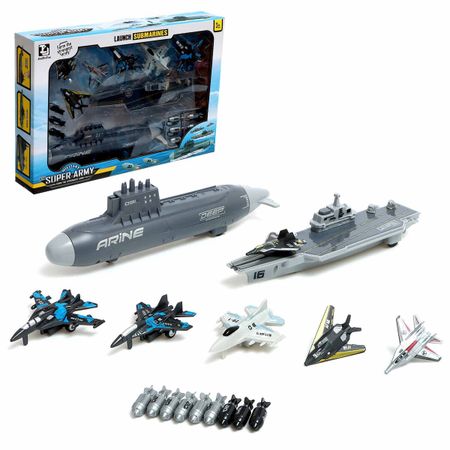 Игровой набор «Ударная группа», подвижные элементы. Набор «Ударная группа» включает подводную лодку, станцию для запуска истребителей, шесть самолетов и девять ракет-пуль. Комплект создан для увлекательных сражений и миссий на суше. <strong> Особенности</strong> <ul> <li> Подводная лодка оснащена инерционным механизмом и колесиками для движения по поверхности.</li> <li> Станция для запуска истребителей служит базой для организации воздушных операций.</li> <li> Шесть миниатюрных истребителей готовы к выполнению боевых задач.</li> <li> Девять ракет-пуль добавляют интерактивности игре, позволяя моделировать боевые действия.</li> <li> Рекомендовано для детей от 3 лет.</li> <li> Комплект изготовлен из прочного пластика.</li> </ul> <strong> Вдохновляем фантазию</strong> С этим набором ребенок сможет создавать собственные сценарии военно-морских операций, сочетая подводные и воздушные силы. Модели особенно актуальны как подарок на 23 февраля или для любого случая, когда хочется порадовать юного стратега. Реалистичный дизайн и разнообразие элементов сделают каждую игру захватывающей и интересной!