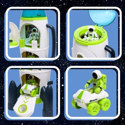 Игровой набор «Исследование космоса», ракета. Игровой набор «Исследование космоса» создан специально для любителей космической техники и исследователей межпланетных пространств! Ведь в него входит все необходимое для космического приключения: луноход, ракета и отважные космонавты. Бонус! В комплекте вы найдете обучающие карточки с интересными фактами и заданиями. <b> Луноход и космонавты</b> Луноход преодолеет любые препятствия на поверхности Луны, Марса и любых других планет. В машину можно усадить фигурку космонавта. У фигурок подвижные руки, ноги и голова. <b> Ракета</b> Ракета способна отправить космонавта на другую планету и высадиться на ней. <b> Особенности</b> <ul> <li> Корабль поделен на три отсека: комната для пилота, кабина пилота на носу ракеты, гараж для небольшого лунохода. Отсеки открываются.</li> <li> Механический стул-лифт поднимает и опускает космонавта между комнатой и кабиной и поворачивается на 360 градусов.</li> <li> Есть световые и звуковые эффекты: нажмите на зеленую кнопку, и появится свет, звук отсчета и запуска ракеты. Для работы необходимо 2 батарейки типоразмера AAА (в комплекте).</li> </ul>