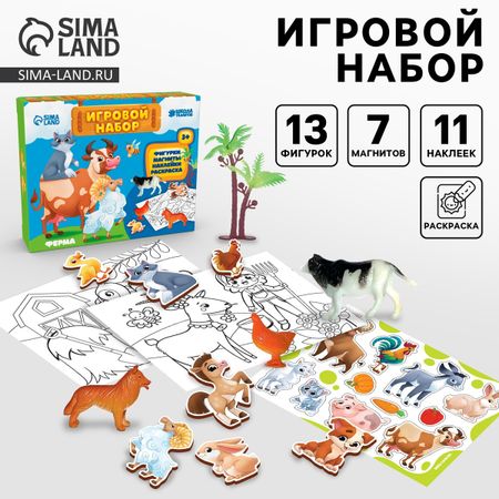 Игровой набор «Ферма», 13 фигурок, наклейки, магниты и раскраски. Такой набор станет отличным подарком ребенку на любой праздник! <b> Что входит в набор:</b> <ul> <li> Фигурки</li> <li> Магниты</li> <li> Наклейки</li> <li> Раскраска</li> </ul> <b> Играйте и развивайтесь вместе с нами!</b>