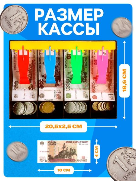 Игровой набор «Мой магазин»: пластиковая касса, монеты, деньги (рубли). <strong> Игровой набор «Мой магазин»</strong> – это инструмент для развития финансовой грамотности у детей от 3 лет. Набор включает кассу, игрушечные купюры и монеты, которые помогут малышу научиться считать, разобраться в различиях между деньгами и развить математические навыки через игровой процесс. <b> Особенности</b> <ul> <li> С помощью набора ребенок познакомится с различными видами денег – купюрами и монетами. Он научится отличать их друг от друга и понимать их значение в повседневной жизни.</li> <li> Играя с набором, ребенок практикует счет, сложение и вычитание. Это делает процесс обучения веселым и запоминающимся, так как все происходит через интерактивные игры.</li> <li> В комплекте есть игровая касса, кредитные карты и множество денег. Ребенок сможет создавать свои сценарии торговли, покупок и продаж, развивая воображение и социальные навыки.</li> </ul> <b> Развиваемся играя</b> Игровой набор «Мой магазин» не только развивает математические способности ребенка, но и формирует базовые знания о деньгах и их роли в обществе. Ребенок сможет понять, как работает система платежей, что такое наличные деньги и пластиковые карты. Это подготовит его к будущему, где финансовая грамотность становится ключевым навыком.
