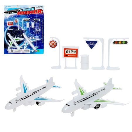 Игровой набор «Аэропорт», 2 самолета, дорожные знаки. Отправляйтесь в мир авиапутешествий! Игровой набор «Аэропорт» – это увлекательный комплект, который перенесет вашего ребенка в атмосферу настоящего аэропорта. <ul> <li> Два самолета в наборе: каждый самолет оснащен инерционным механизмом: просто оттяните его назад, и он помчится вперед самостоятельно! Никаких батареек — играйте где угодно: дома, на улице или даже в песочнице. Самолеты движутся плавно и быстро, словно настоящие воздушные суда на взлетной полосе.</li> <li> Дорожные знаки для реалистичности: в комплект входят знаки, которые помогают создавать правильную инфраструктуру аэропорта. Это добавляет игре реализма и позволяет разыгрывать настоящие сценарии управления воздушным движением.</li> <li> Прочный и стильный: игрушки изготовлены из качественного пластика, который выдерживает активные игры. Легкие и удобные, самолеты легко взять с собой куда угодно. Их яркий дизайн и детализированный внешний вид делают их похожими на настоящие пассажирские авиалайнеры.</li> </ul> Что развивает: этот набор помогает развивать воображение, координацию движений и навыки стратегического мышления. Ребенок может придумывать свои маршруты, организовывать взлеты и посадки или разыгрывать сценарии работы аэропорта. Это не только весело, но и полезно для развития.
