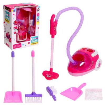 Игровой набор «Хозяюшка»: пылесос со светом и звуком, принадлежности для уборки. С пылесосом «Розовая мечта» комната малышки всегда будет сиять чистотой, а дополнительные предметы помогут хозяюшке избавиться от каждой пылинки в доме. Для работы техники потребуются 3 батарейки типа АА (в комплект не входят). Устройство потоком воздуха вберет в себя все пенопластовые шарики, при этом лампочки на корпусе устройства будут завораживающе светиться. В процессе игры девочка освоит новые социальные роли, повторит поведение взрослых и узнает назначение разнообразных бытовых принадлежностей. <b> В наборе: </b> <ul> <li> пылесос: 18 × 13 × 9 см; </li> <li> насадка пылесоса: 3,5 × 6,5 × 24 см; </li> <li> шланг пылесоса (длина): 33 см; </li> <li> совок с длинной ручкой: 6 × 8,5 × 18 см; </li> <li> щетка с длинной ручкой: 1,5 × 7 × 22 см; </li> <li> совок маленький: 9 × 6,8 × 1 см; </li> <li> щетка маленькая: 8 × 1,5 × 2,5 см.</li> </ul> Для детей старше 3 лет.