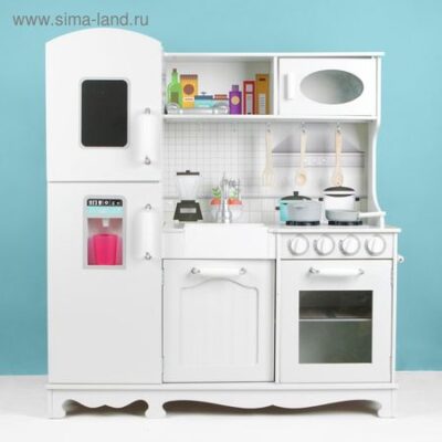 Детская кухня из дерева — это идеальный подарок для маленьких хозяек, которые любят экспериментировать с приготовлением блюд и устраивать сюжетные игры. Компактный игровой модуль с элегантным белым дизайном станет центром внимания в детской комнате и вдохновит на создание кулинарных шедевров.ОсобенностиНесколько игровых зон: раковина с краном, варочная панель, духовка, микроволновка и двухкамерный холодильник с имитацией аппарата для льда.Шкафчик под раковиной для хранения посуды и аксессуаров.Изготовлено из экологичного дерева, покрытого безопасной краской, что обеспечивает долговечность и безопасность для детей.Эргономичный дизайн подходит для детей от 3 лет — все элементы удобны для маленьких ручек.Играем с пользойИгровая кухня помогает развивать воображение, социальные навыки и мелкую моторику. Ребёнок учится взаимодействовать с предметами, придумывать сценарии и воплощать свои идеи. Это не просто игрушка, а целый мир, где малыш может почувствовать себя самостоятельным и творческим.