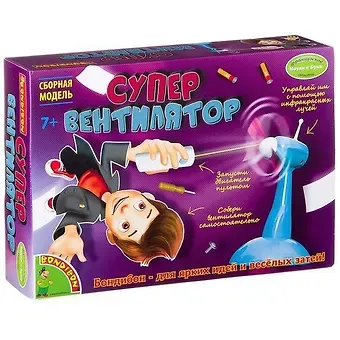 Собери вентилятор самостоятельно и запусти его с помощью пульта. Управляй вентилятором с помощью инфракрасных лучей. Внутри коробки вы найдете все необходимое для сборки вентилятора и пульта управления. Для работы с набором дополнительно понадобятся — 3 батарейки АА и 2 батарейки ААА (в набор не входят).
