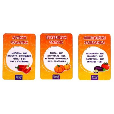 Игровой набор продуктов «Весело играем. Овощи». Ваш малыш любит играть и интересуется разными профессиями? Тогда набор «Весело играем» станет эффектным подарком для него! С этим набором ребенок сможет придумать сюжетно-ролевые игры в новой для себя сфере! <b> Что в наборе:</b> <ul> <li> доска,</li> <li> овощи,</li> <li> нож,</li> <li> шопер,</li> <li> рецепты.</li> </ul> Ребенок разрежет пополам овощи — приготовит салатик, суп или запеканку. После игры половинки продуктов легко принимают исходную форму, стоит только присоединить друг к другу обе части. Для удобства все предметы можно сложить в шопер. <b> Польза игр с набором</b> Игры с набором способствуют развитию воображения, мышления, цветового и эмоционального восприятия ребенка. Ребенок осваивает социальные роли, проецирует модели поведения взрослых на игровые сюжеты, учится самостоятельности и ответственности.
