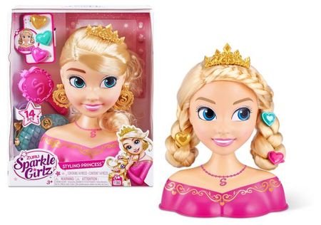 Манекен ZURU Sparkle Girlz для для укладки волос принцессы включает в себя все необходимое для создания гламурного образа! У этой принцессы невероятно шикарные локоны, готовые к укладке. Расчешите ее волосы королевской щеткой и используйте яркие аксессуары для волос, чтобы подчеркнуть уникальный стиль. Меняйте ее образ от королевской прически до элегантной косы.