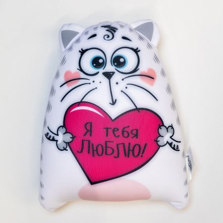 Игрушка-антистресс «Я тебя люблю!». <strong> Котик в каждый дом </strong> Антистрессовые игрушки очень эффектны и красивы, они приятны на ощупь и создают поистине волшебный релаксирующий эффект. А уж милый котэ, которого можно мять в свое удовольствие, точно станет запоминающимся подарком. Главный секрет этих моделей — в наполнителе. Игрушки легкие, упругие и всегда хорошо выглядят: как бы вы их ни сжимали, они неизменно возвращаются в первоначальную форму. Изделия можно стирать в машинке, предварительно поместив в специальный мешок для одежды. <strong> Преимущества антистрессовых игрушек: </strong> <ul> <li> Снимают напряжение, помогают преодолеть депрессию. </li> <li> Производят терапевтический эффект. </li> <li> Не утрачивают со временем свой первоначальный внешний вид. </li> <li> Наполнитель устойчив к воздействиям любого рода, ткань не выгорает, не линяет во время стирки, не впитывает влагу. </li> <li> Не становятся рассадником опасных пылевых клещей. </li> </ul> <strong> Материал: </strong> Наполнитель: гранулы полистирола. Диаметр шариков — менее 1 мм. Обшивка выполнена из высокопрочного трикотажа, обладающего повышенной эластичностью, абсолютно безопасного для детей.