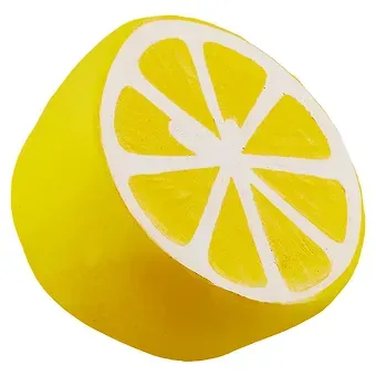 Игрушка сделана в виде половинки сочного лимона. Он пахнет ванилью и помогает снимать напряжение.