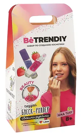 Игрушка для детей старше восьми лет в наборе: Научно-познавательный набор модели косметика DIY Be TrenDIY Beauty «Блеск-роллер». В наборе: стеклянные роллеры (2 шт.), основа, пипетка, мерный стаканчик, блестки, ароматизатор, масло натуральное, перчатки.
