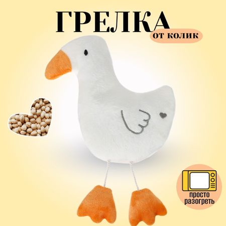 Игрушка грелка с вишневыми косточками «Гусь», Крошка Я. Игрушка с вишневыми косточками «Гусь» выполнена из качественного гипоаллергенного материала. Внутри игрушки подушечка с вишневыми косточками для разогревания в микроволновке или охлаждения в холодильнике. Плюшевая игрушка позволяет развиваться малышу с первых дней и помогает мамам сразу в нескольких направлениях: <ul> <li> Помогает справиться с коликами новорожденных, успокоить, снять физическое и эмоциональное напряжение.</li> <li> Расслабляет перед сном и помогает быстрее уснуть.</li> <li> Разогретые вишневые косточки являются прекрасной успокаивающей ароматерапией.</li> <li> Игрушка помогает развивать мелкую моторику пальчиков малыша.</li> <li> Развивает игровую деятельность, осязательные и сенсорные навыки.</li> </ul> <b> Как нагреть?</b> Достаньте подушечку с вишневыми косточками из игрушки и нагрейте в СВЧ печи 40 секунд. Затем вложите подушечку в игрушку и убедитесь, что температура комфортная для вас и ребенка. Положите теплую игрушку малышу на животик при коликах. <b> Как остудить?</b> Подушечку с вишневыми косточками поместите в морозильную камеру в полиэтиленовом пакете, и заморозьте до комфортной для Вас температуры (не более 60 минут). Холодный режим помогает при ушибах и тонизирует. Милая игрушка с вишневыми косточками «Гусь» будет способствовать сенсорному и эмоциональному развитию малыша!