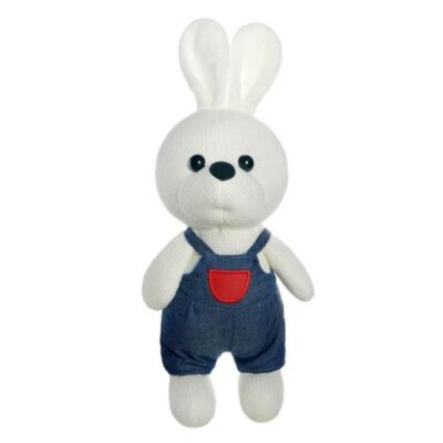 Игрушка мягкая Abtoys Knitted Зайка мальчик вязаный в джинсовом комбинезончике 25 см