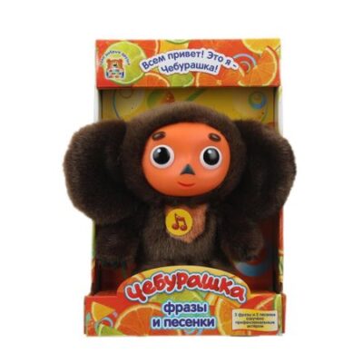 Игрушка мягкая: герои мультфильмов СОЮЗМУЛЬТФИЛЬМ, МУЛЬТИ-ПУЛЬТИ V36083-17X. Озвученная мягкая игрушка «Чебурашка» ТМ «Мульти-Пульти» непременно понравится маленькому поклоннику мультфильма студии «Союзмультфильм» про крокодила Гену и Чебурашку:<br> — поет 2 фрагмента песенки из м/ф<br> — говорит 3 фразы<br> — озвучено профессиональным актером<br> — высокое сходство с персонажем<br> — легкая замена батареек (карман на липучке)<br> — качественные материалы<br> — красивая подарочная упаковка<br> <br> Малыш будет рад знакомству с таким очаровательным пушистым персонажем. При нажатии на звуковую кнопку, располагающуюся на груди, Чебурашка будет петь песенку «Я был когда-то странной…» и говорить несколько фраз героя. С этой игрушкой ребенок может воссоздать уже знакомые по мультфильму сюжеты или придумать новые. Милый Чебурашка станет малышу добрым другом, которого можно взять с собой на прогулку или в поездку. Наличие специального кармашка на липучке обеспечивает легкую замену батареек.<br> <br> Игра с озвученной мягкой игрушкой ТМ «Мульти-Пульти» развивает:<br> — музыкальный слух<br> — воображение и фантазию<br> — тактильное восприятие<br> — социально-коммуникативные навыки<br> <br> Размер: 17 см. Материал: текстиль + пластмасса + металл.<br> Работает от 3-х батареек типа LR44 (входят в комплект).<br> Рекомендовано детям от 3-х лет.