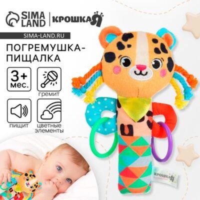 Игрушка — пищалка Крошка Я «Леопард», с погремушкой. Игрушка- пищалка с первых месяцев жизни малыша станет прекрасной развивающей игрушкой вашего ребенка. Игрушку пищалку удобно держать маленькими пальчиками, что развивает мелкую моторику рук. Яркий и приятный образ поможет развить сенсорное восприятие цвета, формы и фактуры. Мягкий звук при сдавливании пищалки активизирует слуховые анализаторы и способствует концентрации внимания. • Игрушка пищит • Яркая, приятная на ощупь ткань • Милые современные образы • Изготовлено из гипоаллергенных материалов. • В упаковке — 1 игрушка