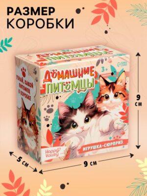 Игрушка — сюрприз «Домашние питомцы. Коты». Игрушка-сюрприз «Домашние питомцы. Коты» станет отличным подарком или неожиданным сюрпризом для маленьких любителей животных. Внутри каждой коробки скрывается очаровательный котик, который порадует ребенка своим милым видом. Собери свою коллекцию пушистых друзей! <b> Что вас ждет</b> <ul> <li> Каждая игрушка спрятана в милой картонной коробке — открытие становится настоящим сюрпризом.</li> <li> Фигурки выполнены из качественного пластика, безопасного для детей.</li> <li> Игрушка подходит как для мальчиков, так и для девочек от 3 лет.</li> <li> В коллекции представлено несколько котят. Собери их всех.</li> </ul> <b> Польза для развития</b> Собирая всех котиков из серии, дети могут создавать свои мини-истории, придумывать игры и развивать воображение. Игрушка-сюрприз «Коты» станет отличным подарком или дополнением к нему на день рождения, Новый год или любой другой праздник.