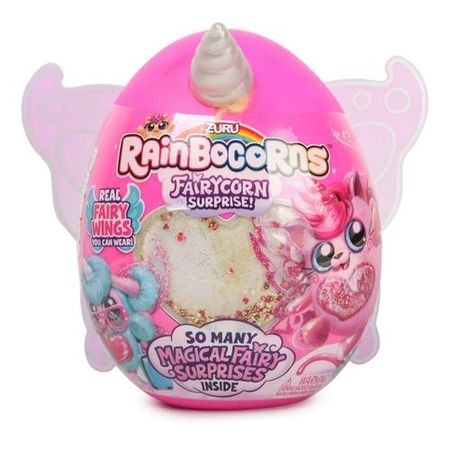 Наслаждайся распаковкой, находи сюрпризы, и погрузись в сказку вместе с новым плюшевым другом.Внутри упаковки-яйца вас ждёт сразу несколько сюрпризов: мягкая игрушка Rainbocorn, мини-фигурка Boo-boocorn, меняющий цвет слайм.Также вы получите большие крылышки феи, которые может носить ребенок.Игрушка из нежнейшего плюша украшена фирменным аксессуаром Rainbocorn – сердечком с блёстками.Попасться может одна из 7 плюшевых игрушек: бегемот, зайчик, пудель, единорог, котенок, сова или редкий золотой бегемот. Кто именно? Сюрприз!ВНИМАНИЕ! Конкретный вариант товара станет известен только после покупки и вскрытия упаковки (сюрприз).