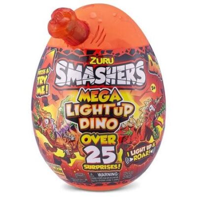 Игровой набор SMASHERS MEGA LIGHT UP SURPRISE EGG — это более 25 сюрпризов внутри вулканической лавы! Разверните упаковку и следуйте по карте, а затем постройте идеального светящегося Дино SMASH-O-SAUR! Вставьте ДНК в Дино и щёлкните хвостом, чтобы активировать звуковую и световую функции! Используйте скретч-карту вулкана, чтобы раскопать ископаемую породу, лавовый слайм, песок дино и яйца Smash Eggs. Разбейте яйца Smash Eggs на земле и начните собирать свою коллекцию уже сегодня! Следите за всей своей коллекцией с помощью бесплатного путеводителя коллекционера, который находится внутри каждой упаковки.В комплекте:1 светящийся динозавр,1 диносумка,1 карта,5 компонентов для раскопок,6 яиц с сюрпризами,1 инструмент для раскопок.ВНИМАНИЕ! Конкретный вариант товара станет известен только после покупки и вскрытия упаковки (сюрприз).