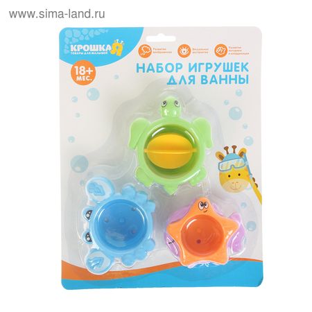 Погружайтесь в морской мир с забавными игрушками! Набор игрушек для ванны «Морские стаканчики» – это увлекательный комплект, который превратит купание малыша в весёлое приключение. Состоит из 4 разноцветных игрушек, каждая из которых выполнена из безопасного пластика.ОсобенностиИгрушки помогают развивать логику, моторику, координацию движений и цветовое восприятие. Ребёнок сможет зачёрпывать и процеживать воду, вращать вертушку и собирать пирамидки, что способствует развитию воображения и мелкой моторики.Каждая игрушка оформлена яркими морскими мотивами: черепаха, звезда, краб и рыбка. Разноцветные элементы привлекают внимание малыша и создают атмосферу веселья и радости.Все игрушки изготовлены из нетоксичного пластика, соответствующего высоким стандартам безопасности. Перед первым использованием рекомендуется помыть их в горячей мыльной воде и тщательно промыть чистой водой.Набор идеально подходит для малышей от 1.5 лет.Набор «Морские стаканчики» станет отличным подарком для любознательных малышей, которые обожают играть с водой. Яркие цвета, интересные формы и многофункциональность сделают эти игрушки незаменимыми помощниками в развитии ребёнка. Погрузитесь в удивительный мир морских приключений вместе с малышом!