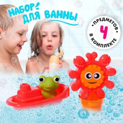 Игрушки для купания в ванне «Солнышко», набор 4 предмета
