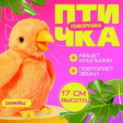 Интерактивная птичка-повторюшка — это забавная игрушка, которая не только повторяет звуки, но и машет крыльями, словно настоящая. Устройте ей компанию, и она станет идеальным спутником для игр и веселья.ОсобенностиПтичка умеет повторять фразы, произнесённые вами. Она запоминает слова и воспроизводит их шевеля клювом, превращая общение в увлекательное развлечение.Игрушка умеет махать крыльями, что делает её ещё более интересной и реалистичной.Высота игрушки составляет 17 см, что делает её удобной для игры дома, на улице или даже в путешествии. Мягкие материалы безопасны для использования.Развиваемся играяИнтерактивная птичка подходит для малышей от 3 лет. Благодаря простоте управления и ярким функциям, она развивает воображение, слуховое восприятие и моторику. Для работы потребуются 3 батарейки типа AAA (не входят в комплект).Игрушка станет настоящим другом, с которым можно играть часами. Подарите радость и удивление — пусть «Птичка-повторюшка» станет любимцем всей семьи!