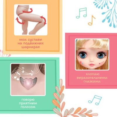 Интерактивная кукла «Любимая подружка», звук, свет. Интерактивная кукла «Любимая подружка» — это увлекательная игрушка для детей от 3 лет, которая оснащена звуковыми и световыми эффектами. Высота куклы составляет 40 см — это делает ее удобной для игр и переноски. Кукла способствует развитию социальных навыков, воображения и творческого мышления. Она станет верным другом для вашего ребенка и будет сопровождать его дома и в садике. <b> Особенности</b> <ul> <li> Кукла изготовлена из долговечного и безопасного пластика и текстиля.</li> <li> Звуковые эффекты добавляют реалистичности в игры, стимулируя воображение ребенка.</li> <li> Световые элементы делают игру более захватывающей, особенно в темное время суток.</li> </ul> <b> Роль куклы в развитии ребенка</b> <ul> <li> Воспитание человеческих чувств, нравственности. Ребенок будет «учить» куклу тому, чему научился сам.</li> <li> Пропорции куклы формируют правильные представления о своем теле у ребенка. Это важно для его дальнейшего психического и физического здоровья.</li> </ul>
