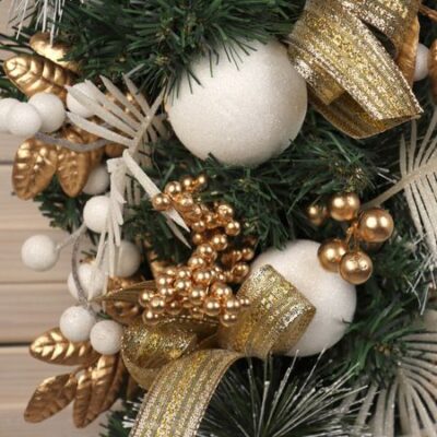 Искусственная елка настенная «Ветка ажурная» 60×34 см. Настенная елка «Ажурная», 60 см, с бело-золотым декором — это объемный и доброжелательный элемент новогоднего убранства. Подвесная модель высотой 60 см выполнена из мягких ПВХ-веток с отгибающимся креплением, имеет зеленую хвою и украшения белого и золотистого цветов — акцент в стиле классики и советской эстетики для тех, кто ценит свет, текстуру и зимнюю атмосферу без лишней пестроты. <b> Особенности</b> <ul> <li> Тип — подвесная елка, крепится на стену, дверь или окно без сложного монтажа.</li> <li> Материал — ПВХ, обеспечивает мягкость формы и долгий срок службы при ежегодном использовании.</li> <li> Форма — легко расправляющиеся ветки принимают пышный вид за минуты после установки.</li> <li> Декор — елочные игрушки бело-золотой гаммы усиливают праздничную тематику и добавляют образу движения, тепла и роскоши.</li> <li> Стиль — соединение строгости классики и лаконичности советского дизайна в одной целостной форме.</li> </ul> <b> Праздник начинается с одного взгляда на золотые шары и крону</b> Эта елка делает помещение частью вашей личной истории о чуде и семейном тепле. Зеленые тона и теплые бело-золотые акценты работают вместе, чтобы передать дух Нового года и предпраздничное ожидание подарков. Используйте как самостоятельный элемент или как фон для других украшений — одинаково ярко усиливает атмосферу торжества и доброжелательность дома.