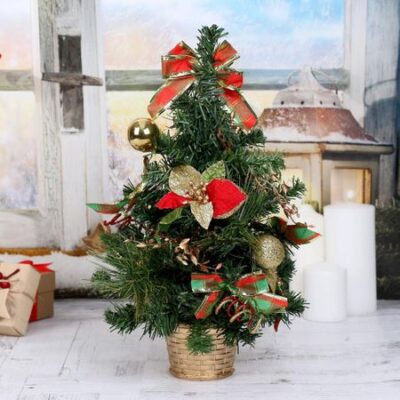 Искусственная елка настольная «Зимнее волшебство. Новогодние листочки», 40 см, ветки ПВХ отгибаются. Настольная елка высотой 40 см с зеленой хвоей и яркими красными украшениями станет выразительным элементом новогоднего декора. Отгибающиеся ПВХ ветки легко принимают нужную форму, помогая создать объем и естественный силуэт. <b> Особенности</b> <ul> <li> Оптимальный размер для украшения рабочего пространства, гостиной или прихожей.</li> <li> Гибкие ветки обеспечивают удобство в оформлении и позволяют адаптировать елку под любой интерьер.</li> <li> Красные украшения подчеркивают праздничную атмосферу и сочетаются с разными стилями — от ар-деко и советского до фьюжн, классики и новогоднего барокко.</li> <li> Материал из ПВХ и пластика гарантирует долговечность и легкий уход.</li> </ul> <b> Создаем праздничное настроение</b> Эта компактная елка приносит уют и тепло в любое помещение, наполняя пространство духом зимних праздников и создавая атмосферу радости и ожидания чуда.